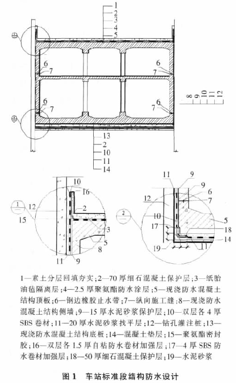 关键词:地铁车站;SBS卷材;聚氨酯涂料