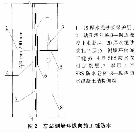 由于车站结构跨度地域面积较大,距离周围居民楼较近,居民楼地下很多上世纪60年代修建的各种自来水、污水管线渗漏现象严重,特别是上层滞水、潜水均在车站开挖范围以内,含水量较大。再加上工期紧,地表井点降水时间不足,防水施工难度极大。