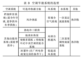 表3从档案库房、其他功能房的2套空调进行空调节能系统的选型。