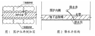 因此,决定在地墙施工时对地墙周边打设深井进行降水,以降低水压力。