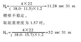 经过计算,在未采取降水措施的情况下,需将泥浆密度调整至1.57以上才能保持槽壁稳定,而这个密度是不可能的;如在成槽过程中保持地下水位在5 m以下,则在31 m深槽段的泥浆密度调整至1.15以上后槽壁可以保持稳定。