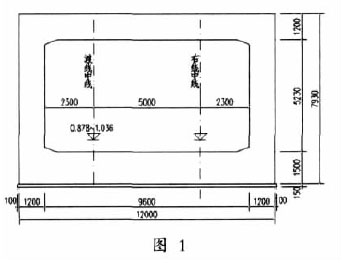 地下轨道交通工程在线路设计中,由于车站两端设置的折返线或渡线原因,无法在上、下行线路之间设置中隔墙,造成隧道的结构断面跨度较大,同时,由于顶板覆土厚度的影响,结构的顶、底板和外墙的厚度大幅度增加(见图1)。该断面的净跨度为9.60m,顶板覆土达7.0~8.0m,确定后的顶板、外墙和底板的厚度分别为1.20m和1.50m,每一段箱体的浇注长度常规为20.0m,由于断面各部位的尺寸较大,每一段箱体的浇注长度改为15.0m。另外,该断面的混凝土浇注时间正好在当年的7、8月,地面气温达为37~38°,是一年最热的时间。因此,如何保证结构不过多产生裂缝,控制温差是首要的关键。