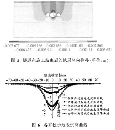 (2)根据计算结果,上述5种施工方案,地表变位均满足施工沉降控制标准。