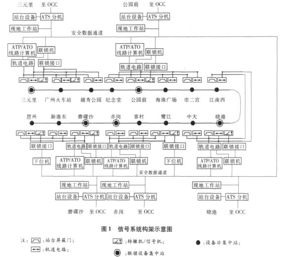 车站ATS采用VICOS OC 101系统,设备分别设置于磨碟沙、赤岗、晓港、公元前、三元里5个联锁设备集中站,系统由LOW工作站和远程终端单元构成。