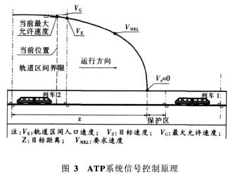 通过测速电机,列车实际运行速度和距离连续地被测量。如果列车在当前位置超过允许速度,ATP车载设备在发出警报后,触发紧急制动。ATP控制原理如图3所示。