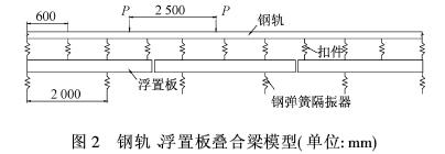 钢弹簧浮置板轨道是将具有一定质量和刚度的混凝土道床板浮置在钢弹簧隔振器上,构成质量—弹簧隔振系统。轨道板通过钢弹簧支承在基础道床上,轨道板可以提供足够的惯性质量来平衡车辆产生的动荷载,只有静荷载和少量的动荷载会通过钢弹簧传到基础道床上。钢弹簧浮置板轨道是目前减振效果最好的轨道结构,其技术先进、应用成熟,已在德国、英国、巴西等国家地铁工程中应用,国内北京地铁、南京地铁等已成功铺设,效果很好。本文分析的盾构中钢弹簧浮置板轨道基本结构如图1。