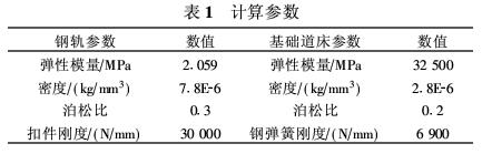 目前,盾构中浮置板轨道结构高度一般取840mm,为研究结构合理尺寸,取轨道结构高度为840mm、800 mm和770 mm(即基础道床厚度为325 mm、285mm和255 mm)三种工况进行计算比较,记为工况1、工况2和工况3。