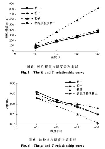 冻土在荷载作用下会发生弹性变形,本文研究了不同土层的弹性模量E、泊松比μ与温度的关系。冻