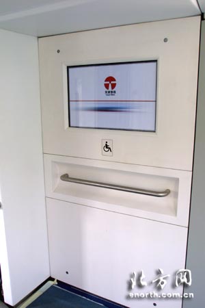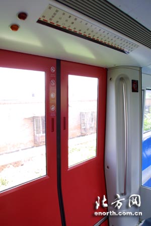 每道门上边都有液晶屏幕显示站名(对面门上是英文名称)