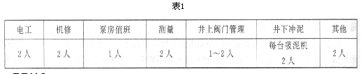 水力排土沉井下沉施工必须采用三班制连续作业。每个班次各工种配备情况如下