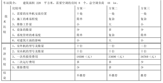 经初步分析,能够进行比选的空调形式有以下三种方案: