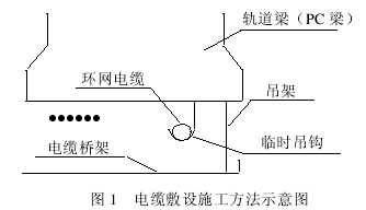 该系统为单轨跨座式交通系统,环网电缆一般沿线路敷设在轨道梁下。由于环网电缆敷设作业面狭小、艰险(PC 梁尺寸仅为 1 500 mm×850 mm,且几乎全为高架,最高离地达 70~80 m,部分区段甚至高架于河面上),因此在敷设过程中如何避免桥架的变形就须特殊考虑。