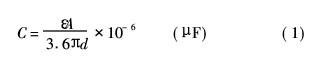 式中,A为极板面积,d为介质厚度;所储存的能量为E=1/2C(ΔV)2,其中C为电容值,ΔV为极板间的电压降。可见,若想获得较大的电容量,储存更多的能量,必须增大面积A或减少介质厚度d。