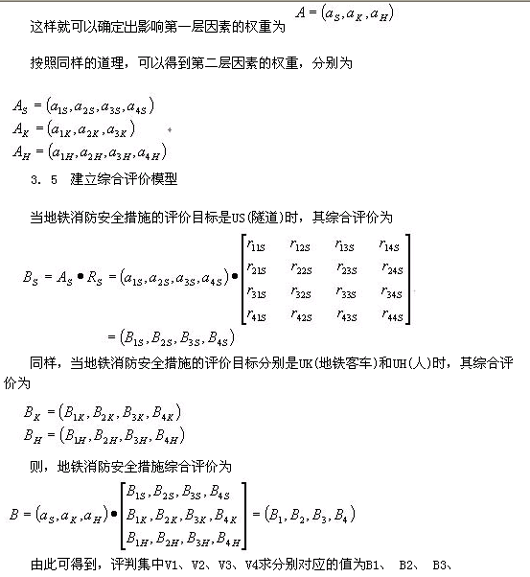 3. 建立地铁消防安全措施综合评价数学模型