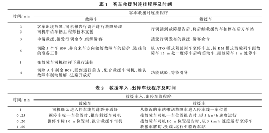 从表1、表2可看出,以上两项花费时间约22min;如果故障车需要清客,则需另加2min;再加上故障车从救援地被推送至到达停车线临近站的时间,整个救援过程的时间将超过24min。