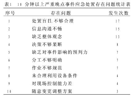 根据有关资料,对多次10分钟以上严重晚点的应急处置分析发现,应急处置可能存在以下一些问题(见表1):
