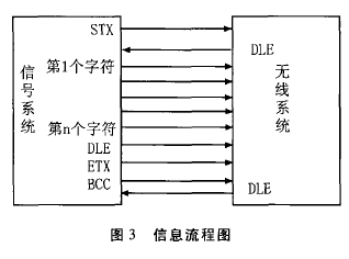 如图3所示,发送端发出STX,接收端在规定时间内必须发出DLE标志作为响应,连接成功,通信可以开始。如果接收端不回答DLE而是NAK或其他信号,或超过等待时间,那么这次通信尝试失败。经过3次通信尝试失败,发送端停止发送,并给上层程序发出错误信号。