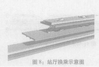 站厅换乘是指设置两线或多线的共用站厅,或相互连通形成统一的换乘大厅。乘客下车后,无论是出站还是换乘,都必须经过站厅,再根据导向标志出站或进人另一个站台继续乘车。由于下车客流到站厅分流,减少了站台上人流交织,乘客行进速度快,在站台上的滞留时间减少,可避免站台因行车延误造成拥挤,同时又可减少阶梯等升降设备的总数量,增加站台有效使用面积,有利于控制站台宽度规模。