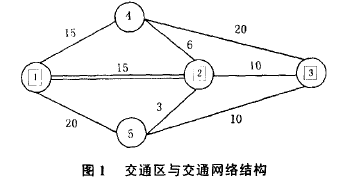 城市道路网是一个复杂的相互连通的运输网,因此一对起始/终迄节点之间的出行路径有多条。一对起迄点之间的最短路线只有一条,尽管出行者在交通区内分散就近出行,但是一对起迄点的有效出行路径是确定的,一般数目不超过8-10条。