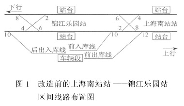 原有的上海南站站是具备折返能力的通过站,距其最近的折返站是徐家汇站和莘庄站;如果上海南站站暂时停用,则在徐家汇站———莘庄站的“6站7区间”内不具备折返功能,运营调整的难度很大。此外,上海南站站还与车辆段的前出库线相连接,上海南站站停用将对列车出入库作业产生影响。为了不影响市民出行,在上海南站站改造施工期间,1号线的运营不能中断。