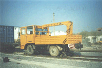 TGQD型铁路公路两用牵引吊车(以下简称两用车)是新型的铁路公路牵引车,它适用于铁路站段调车作业以及大型工厂、矿山、粮库、油田、港口等专用线上的牵引调车作业,也适用于公路及其他专用场地上的拖车运输作业,并因随车配有吊车可作起重机用。