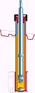减振支柱实质上属于双筒结构,但是它除了阻尼减振以外,还具有以下附加功能: 1. 它和控制臂一起对车轮进行导向; 2. 它通过弹簧托盘支承螺旋弹簧,称为悬挂系统的一部分。 减振支柱设计时充分考虑了车辆行驶时(尤其是刹车和弯道加速时)产生的侧向力对其抗弯曲和抗变形性能的很高的要求,在对活塞、活塞杆和导向等的材料和尺寸进行确定时同样对此进行了考虑。 为降低侧向力引起的高摩擦,导向器和活塞的工作表面采用了可以降低摩擦的零件(滑动衬套、聚四氟乙烯套和聚四氟乙烯薄膜等)。