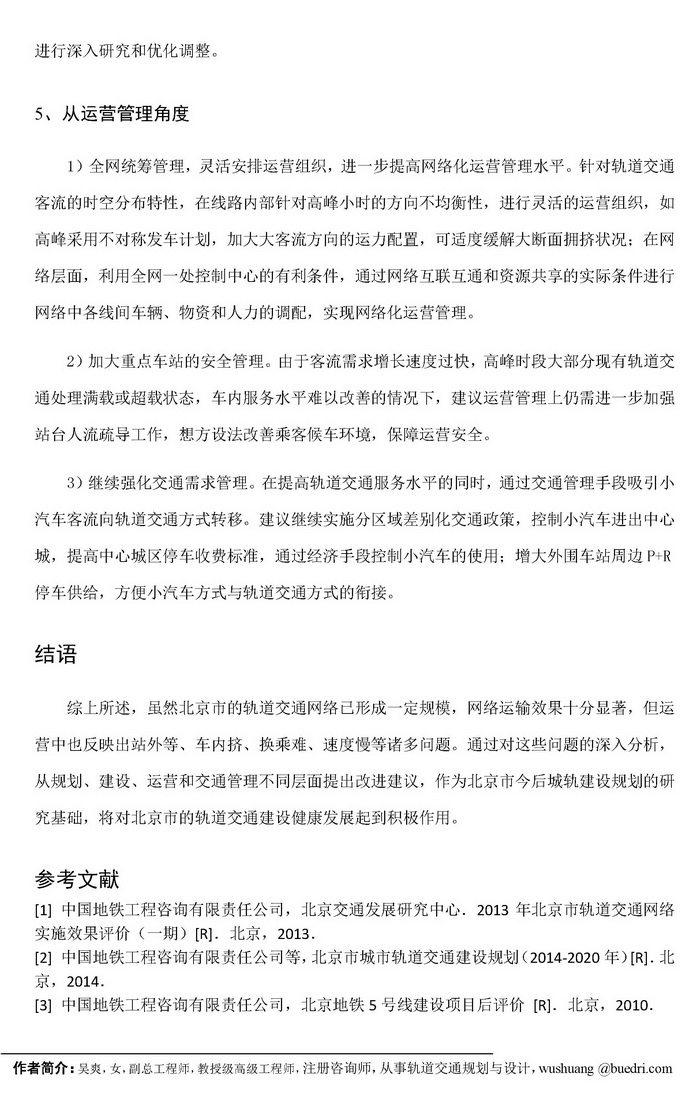 北京市轨道交通网络运营问题分析及规划建设改进的建议
