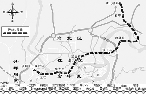 重庆轻轨9号线运行线路确定,一小时横穿五区(图)