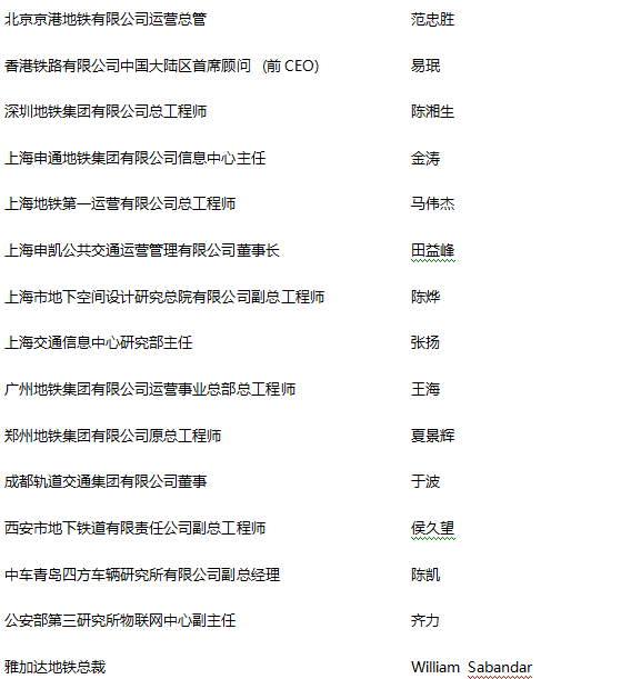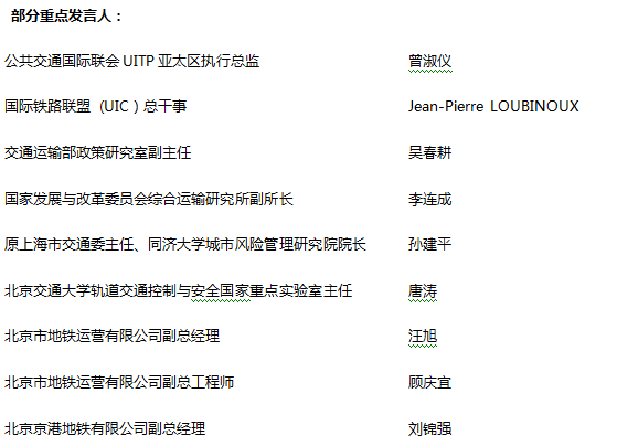 届时北京市地铁运营有限公司、上海申通地铁集团有限公司、广州地铁集团有限公司、深圳地铁集团有限公司、香港铁路有限公司、北京京港地铁有限公司、成都地铁有限责任公司、西安市地下铁道有限责任公司等全国80%以上的地铁业主单位领导将纷纷参与。