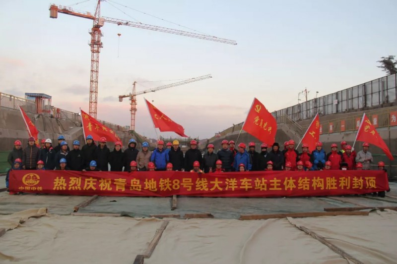 2018年12月28日,青岛地铁8号线大洋站车站封顶。大洋站是地铁8号线过海后的第一个车站,位于青岛市红岛经济区,为地下两层岛式车站,总长465.6米,车站宽22.2米,深度16~20米,采用明挖顺作法施工。作为青岛地铁8号线过海第一站、青岛地铁8号线铺轨基地之一,承担着过海隧道和科大区间铺轨任务,是青岛地铁8号线关键性节点工程。