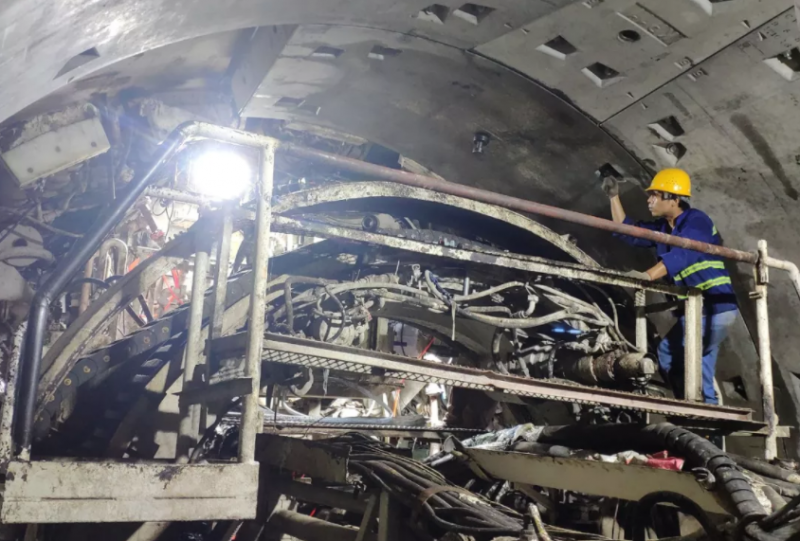盾构下穿过程,现场实行24小时值班机制,技术人员严格控制每一环掘进参数,并同步做好注浆加固工作。经过600多个小时的连续奋战,地铁建设者们以最严谨的态度和精细、高超的管控,顺利破除困难,确保地铁隧道安全穿越北环高速桥涵。