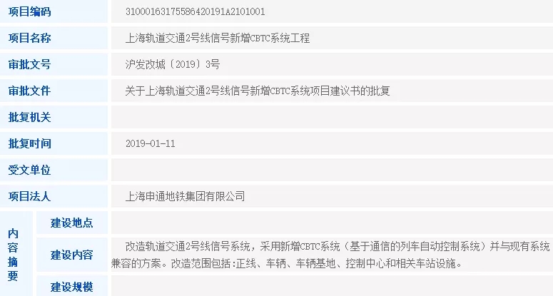 建设内容包括:改造轨道交通2号线信号系统,采用新增CBTC系统(基于通信的列车自动控制系统)并与现有系统兼容的方案。