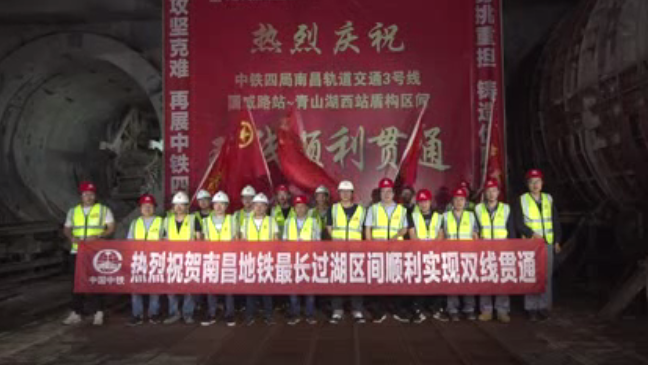 历经356天的奋力掘进,5月30日上午,南昌地铁最长过湖区间——3号线国威路站~青山湖西站隧道盾构区间实现双线贯通。南昌地铁3号线国威路站~青山湖西站盾构区间,由中铁四局承建,广州轨道交通建设监理有限公司监理,区间单线全长约1889米,其中盾构下穿青山湖段长达1190米,是目前南昌地铁穿越湖泊中最长的盾构区间。