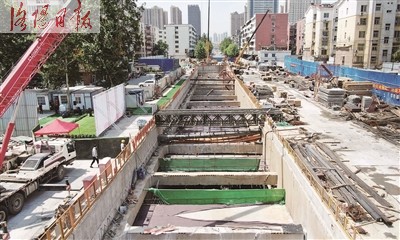 孟凡立介绍,武汉路站在开挖基坑的四周,开挖了一条40余米深的狭长深槽,在槽内吊放钢筋笼,随后在地下筑成一道厚度达1米的连续的混凝土墙壁。这种围护结构施工工艺,增强了车站围护结构的刚度及整体性,大大降低了车站围护结构出现变形、渗漏水等不利情况的可能性,这一工艺也填补了洛阳地铁建设史上的一项空白。