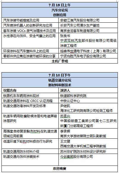 PPG、艾仕得、巴斯夫、关西、立邦、阿克苏诺贝尔、杜邦、威士伯、大金氟、宣伟、科思创、帝斯曼、亨斯迈、美凯威奇、上海发那科机器人、浩力森、金力泰、株洲飞鹿、老虎涂料、双虎涂料、信和涂料、四方威凯、湖南松井新材料、德恩思化学、中山大桥化工、超级材料、中化蓝天、爱尔家佳、华豹涂料、苏州吉人、中山武臧、重庆亿隆涂料、广东科德环保科技、广州浩宇化工、南京长江涂料、德汇新材、南京蓝风新材料、中海油常州院、晨阳工贸、齐鲁漆业、湘江涂料、灯塔涂料、成都彩星、湖北天鹅、千江高新、西北永新、天津科瑞达涂料、无锡远高、上海时佳涂料、广东豪之盛、漳州鑫展旺化工、擎天材料、宝塔山、重庆石墨烯研究院、厦门725所、山东七维、西峡县三胜、鞍山辉虹新材料、江门市邦德涂料、光辉化工、维新制漆、苏州市超邦涂料、重庆海联水性涂料、上海华谊、上海松尾、深圳千浪化工、廊坊艾格玛、福建万安实业、河南五一化工、万佳华盛、天源制漆、上海斯典化工、卡秀堡辉控股、安徽菱湖漆、郑州亿方涂料、欧利生东邦涂料、一达应用技术研究院、上海旭淼化工、郑州圣莱特空心微珠、芜湖春风新材料、南京环科、苏州国建慧投矿物、广东四方威凯、华夏化工新材料、湖南金利源新材料、滁州格锐矿业、山东恒奈琪新材料、广州市实创化工、北京基石创业投资中心、江苏哥林曼特涂覆科技、无锡市远高贸易、杭州立威化工涂料、广州希森美克新材料、英德科迪颜料技术、江西众志检测仪器、安徽嘉智信诺、帝业化学品、长沙族兴新材料、上海辰飞、奇钛科技、天津利安隆、阿科玛、江苏达克罗涂装技术、中电熊猫、江苏纽克莱涂料、南京蓝丰新材料、广电计量、重庆艾克米、上海宜瓷龙新材料、青岛华世洁环保科技、广东茹天机械设备、泰兴盛嘉树脂、上海展杨化工、青岛烯碳瑞尔新材料。