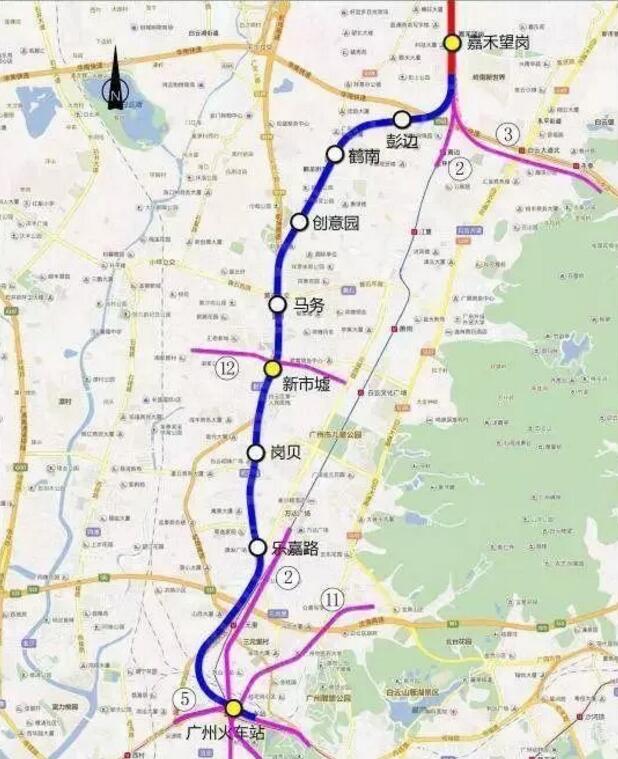 广州市轨道交通14号线二期,将加强从化至市中心的快速联系。线路起于一期工程的嘉禾望岗站,终止于广州火车站,线路全长11.74公里,均为地下线。全线共设彭边、鹤南、创意园、马务、新市墟、岗贝、乐嘉路和广州火车站8座车站。全线采用站站停与大站快车组合运营模式,二期采用站站停运营模式,最高运行时速120公里。根据年度工作计划,该项目将于2021年全线开通运营。