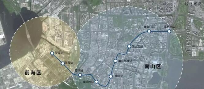 地铁9号线(二期工程)西延线东起深圳湾红树湾南站,西至前海蛇口自贸片区前湾站,线路全长10.8公里,共设10座车站,均为地下站。