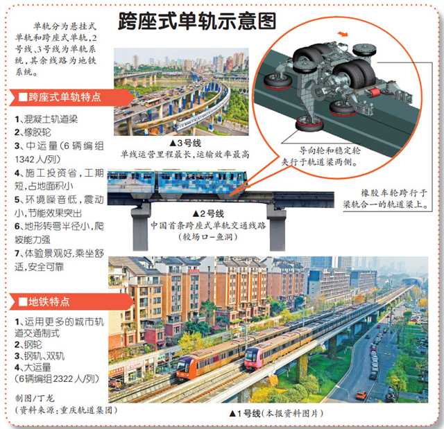 重庆轨道集团称,因系统制式不同、称呼不同,为了方便市民、乘客,重庆轨道集团将“单轨”和“地铁”统称为“轨道交通”。轨道交通2号线、3号线为跨座式单轨系统,其他线路为地铁系统。