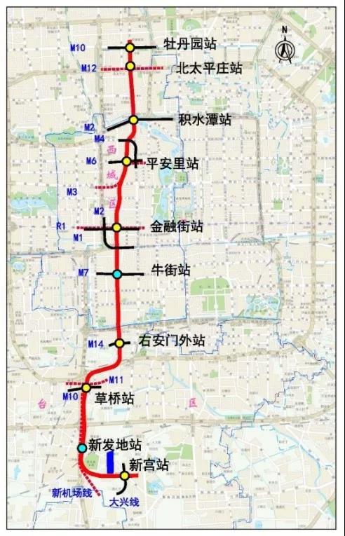 19号线南起丰台区新宫站,北至海淀区牡丹园站,途经金融街、中关村等核心城市功能区,并与大兴机场线在草桥站换乘,对于建立大兴国际机场与主城区的紧密联系,更好地服务于航空主客源地,将起到积极而重要的作用。