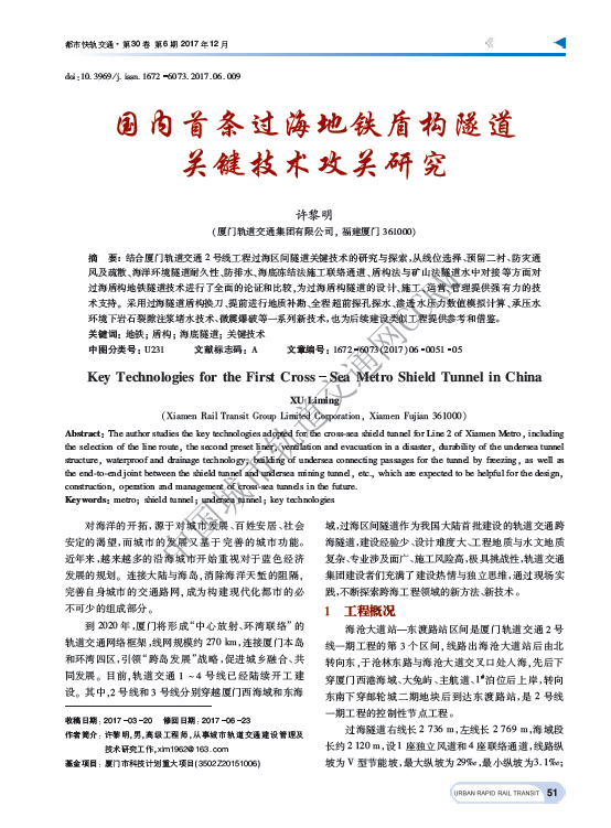 国内首条过海地铁盾构隧道关键技术攻关研究
