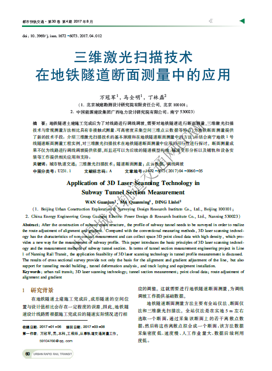 三维激光扫描技术在地铁隧道断面测量中的应用