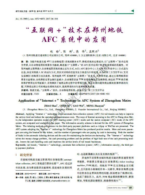“互联网+”技术在郑州地铁AFC系统中的应用