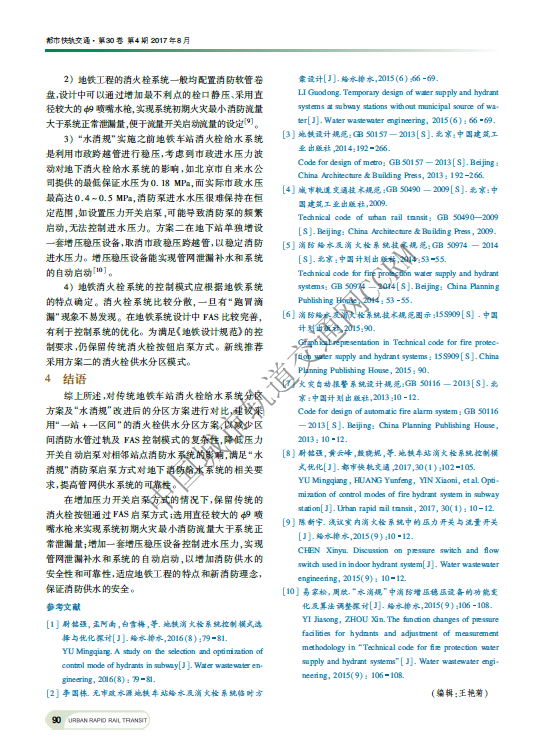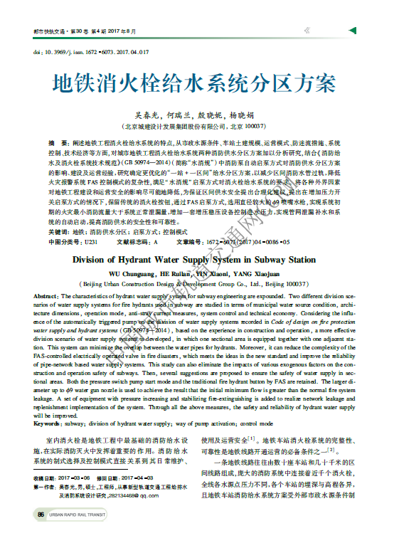 地铁消火栓给水系统分区方案