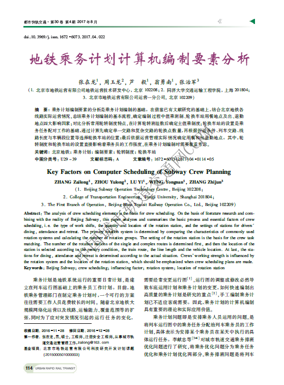 地铁乘务计划计算机编制要素分析