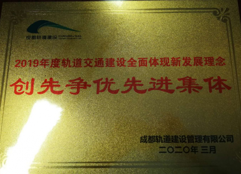 近日,成都轨道建设管理有限公司对2019年地铁建设施工、监理等工作突出的单位进行了表彰,四川铁科成都地铁5号线监理项目获得“2019年度轨道交通建设全面体现新发展理念‘创先争优先进集体’”荣誉。