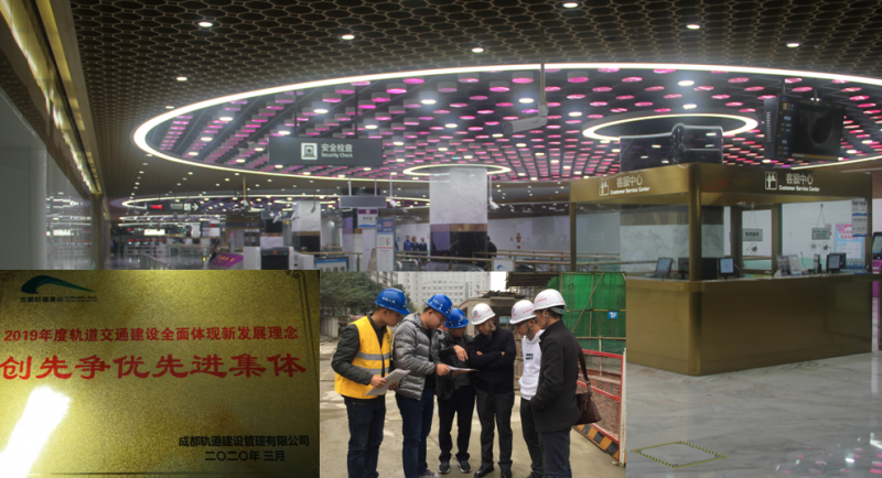 四川铁科成都地铁5号线监理4标,线路长度7.25公里(7站7区间),位于主城区人居和人流密集地,施工组织和安全管控难度较大。自2015年9月工程开工至2019年12月的4年建设时间里,成都地铁5号线4标监理项目部始终秉持严格监理,优质服务的理念,始终把工程质量安全放在首位,始终强化监理人员学习培训,坚持标准和原则,严格按设计图纸及规范要求实施过程监督管理,并对隐蔽工程、关键工序严格监督管理,不断加强了重点部位、管线迁改、起重吊装等施工过程现场旁站监督,确保按期保质保量完成建设任务建设任务。其中,该标段内的中医大省医院站是成都地铁第1个三条线路交汇换乘站,且抚琴站、青羊宫站还是重点艺术站。