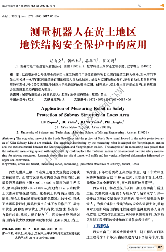 测量机器人在黄土地区地铁结构安全保护中的应用