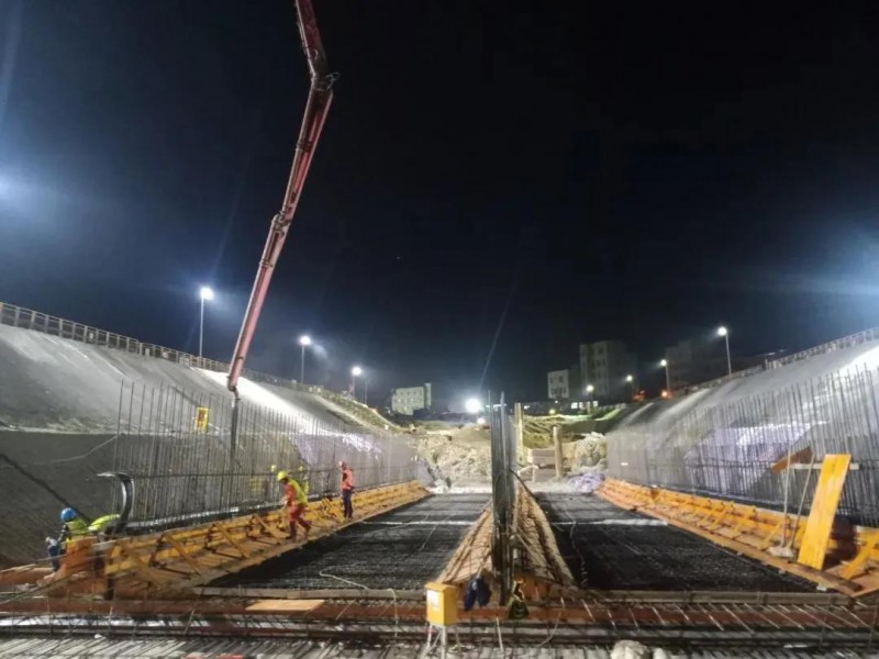 此次地连墙段首件主体结构底板的成功浇筑,为后续主体结构的施工创造了有利条件。项目部正加大组织,加快盾构始发段主体结构施工,确保按期实现车辆段出入线区间盾构始发。