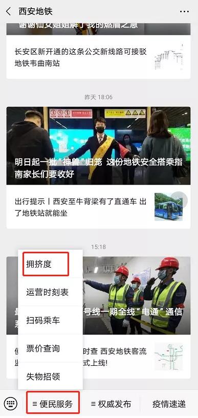 开车出行时,有手机导航为您判断道路是否拥挤,轻松带您避开“红色路段”。从4月27日起,西安地铁客流监测预警系统正式和大家见面。当市民乘客搭乘地铁时,可通过网站:西安地铁官网(www.xianrail.com)、App:西安地铁、微信公众平台:西安地铁 西安地铁运营号、平台中的拥挤度模块查看未来15分钟内的地铁拥挤情况,从而选择适合自己出行的时段、站点和路径,超方便、超贴心的有木有?