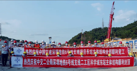 5月8日下午,深圳地铁6号线支线二工区科学城东站(原武汉大学站)最后一块顶板混凝土浇筑顺利完成并封顶。